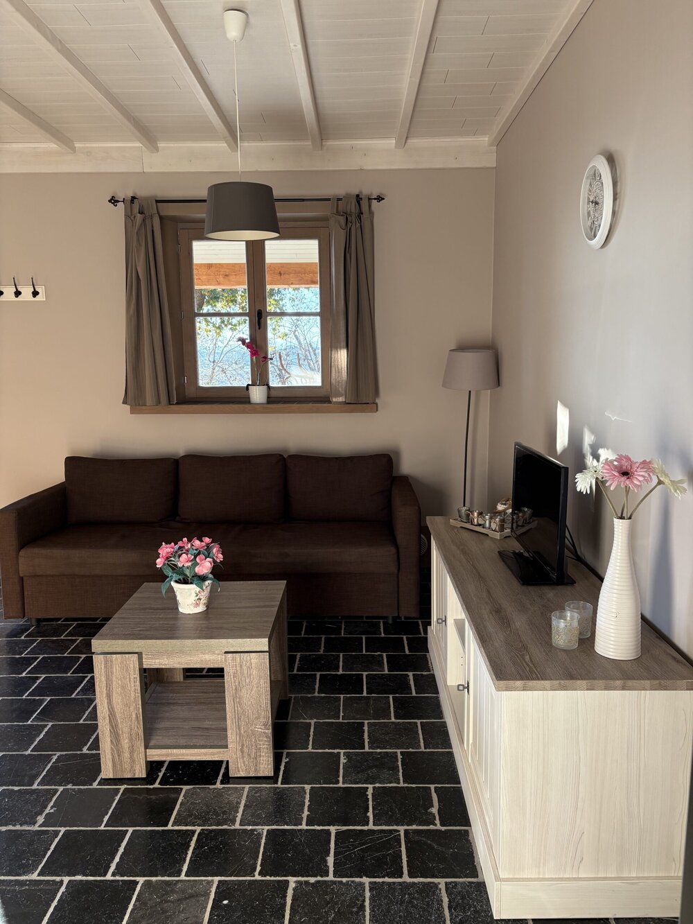 The interior of Il Sorriso is spacious and practically furnished, with a cozy living space where comfort is central.