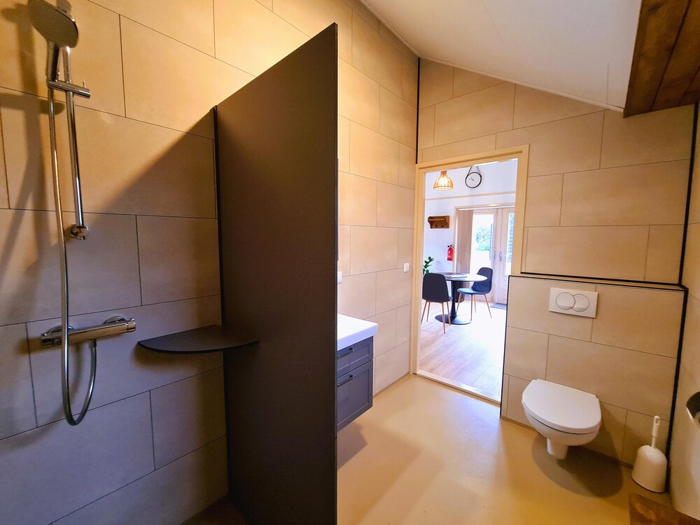 In addition to the camping pitches, there are 5 holiday homes from the year of construction 2022. They are luxuriously furnished cottages and meet the modern wishes and requirements of this time. The holiday homes consist of a private bathroom, bedroom and an attractive living area with a luxury kitchen that is fully equipped.