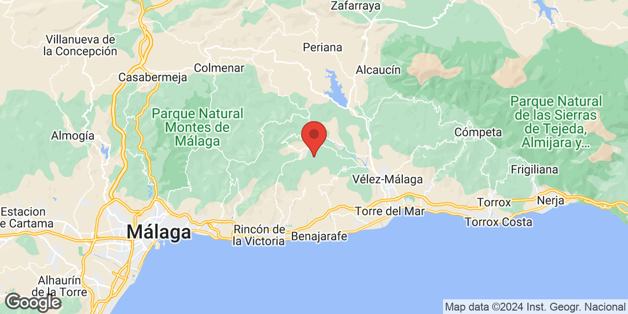 Le B&B est situé dans le paysage vallonné de Vélez-Malaga. Belle vue sur les montagnes de Maroma (2069 m d'altitude), l'agriculture locale et les vignobles du cépage Moscatel.