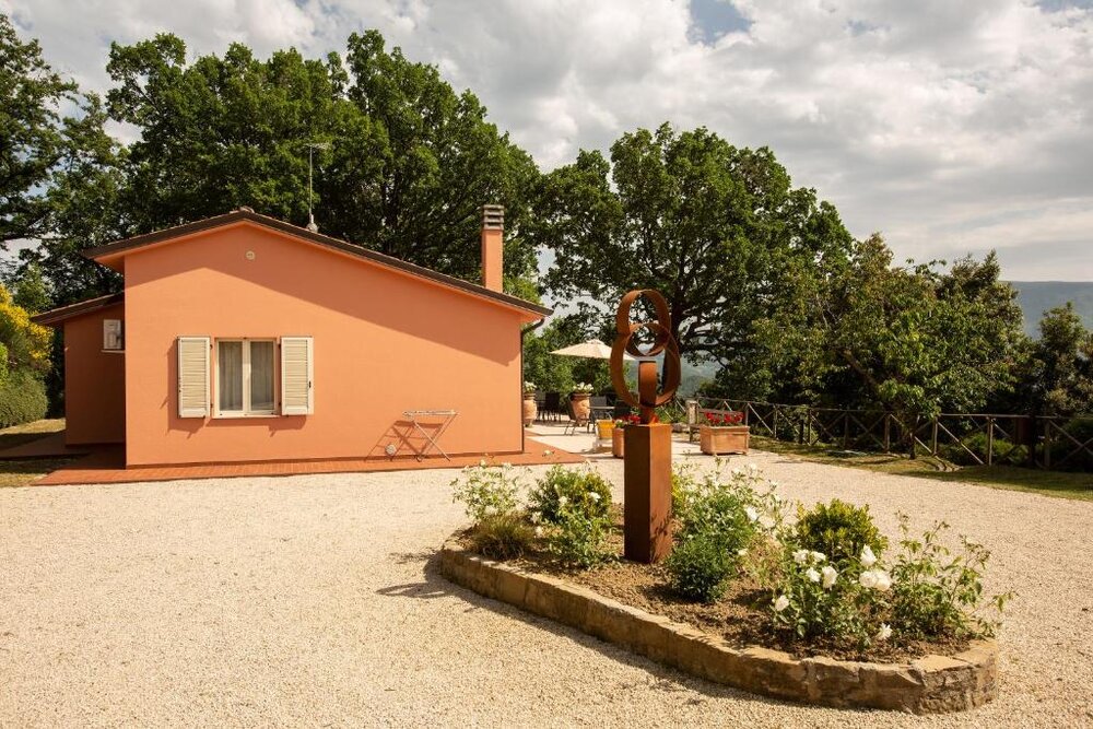 Vanuit het appartement heb je toegang tot een eigen terras waar je kunt genieten van het uitzicht op het groene landschap van Umbrië. Het appartement is ideaal voor gezinnen of kleine groepen die een comfortabele uitvalsbasis zoeken tijdens hun verblijf in Italië.